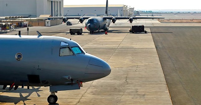 Explosions were heard near the military base,which is used by Western nations as a transit hub within the region.